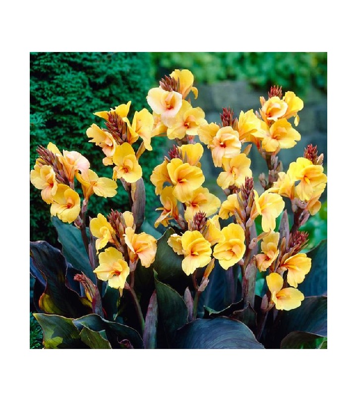 Perenne rizomatosa eretta, varietà ibrida, terreno ricco, neutro, richiede annaffiature abbondanti, posizione pieno sole. piantare in primavera, fioritura da metà estate all'autunno avanzato. fiore con petali colore giallo/arancio, foglie rosse, altamente decorativa, non sopporta oltre i -3°C.. piantare ad una profondità di 5/7 cm, tenendo una distanza di 50/60 cm tra una pianta e l'altra. raggiunge un'altezza di 50 cm, utilizzata per bordure, macchie, aiuole, giardini mediterranei al sole, vasi.